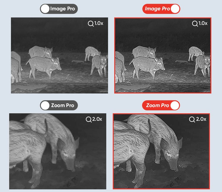 Ce monoculaire intègre des technologies de traitement d'image avancées, telles que Image Pro pour une amélioration des détails et Zoom Pro pour un zoom numérique efficace sans perte de qualité. Ces fonctionnalités garantissent une identification précise et rapide des objets d'intérêt.